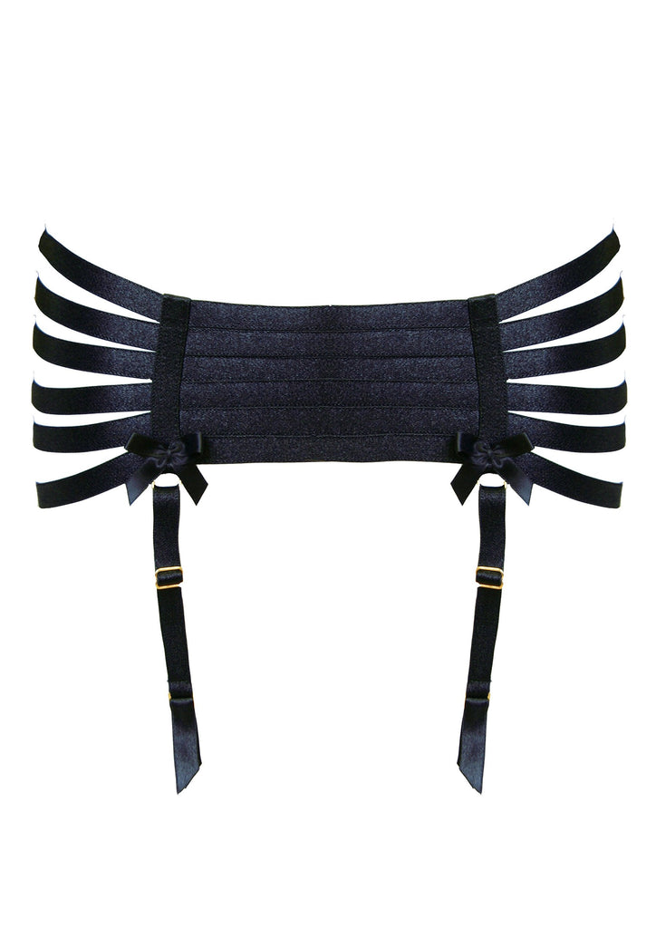 Webbed Suspender Worn low on the hips, our iconic Webbed Suspender is a show piece featuring an eye catching ‘O’ ring detail and fully adjustable straps for the perfect fit.