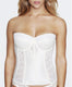 Elegant lace trim adds a romantic touch to this full length, super shaping, low back strapless corset style bra. Creates a smooth, sleek slimming silhouette with secure hold for all figures. Transitions flawlessly beneath gowns and covers slip seams. Garters included.