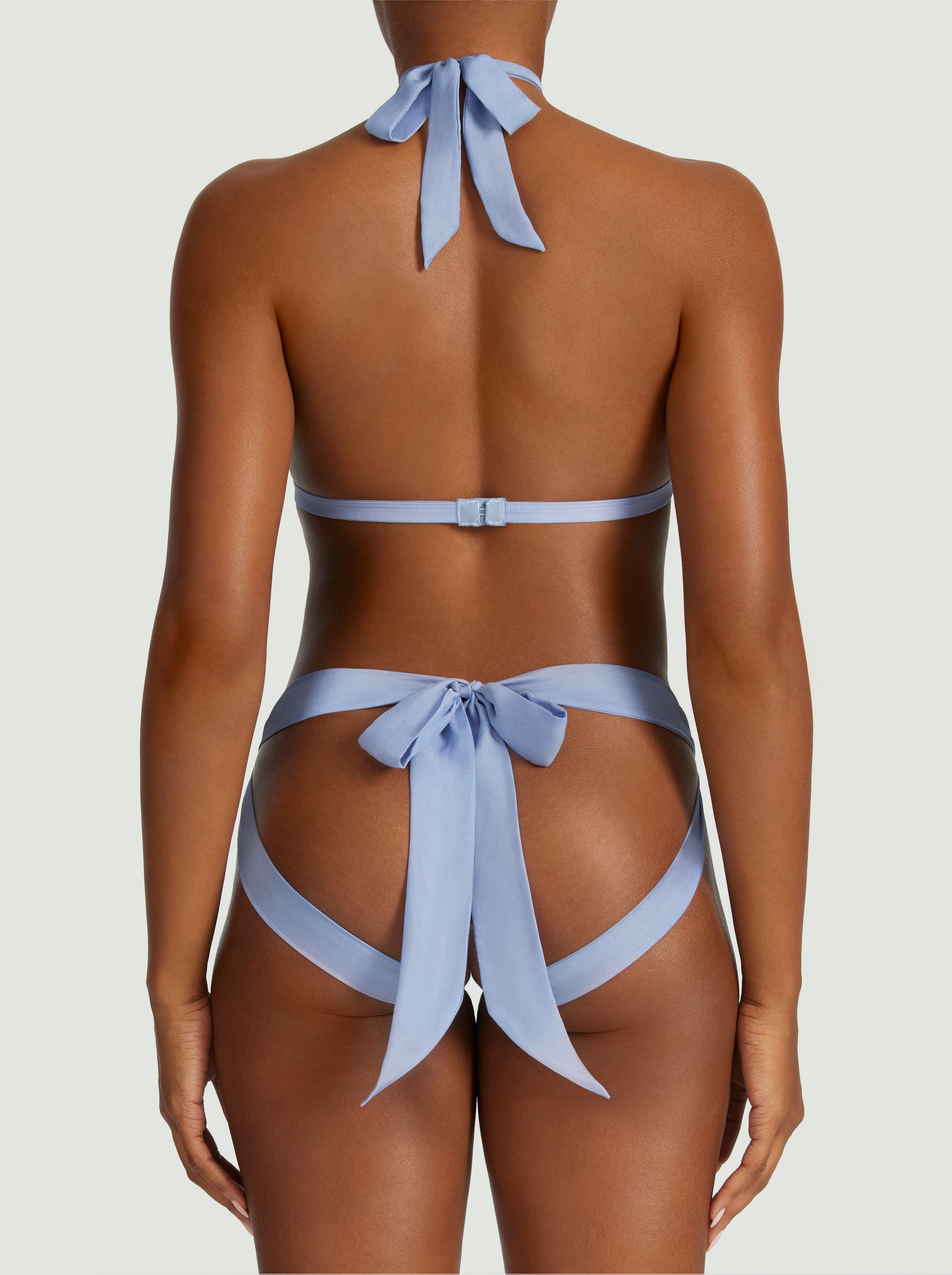 Two bands of silk sit below the breasts and at the waist, adding shape and quiet allure. The elegant high cut thong shape blends with the tactile nature of the silk diamond cut panelling gliding down from the waistband, all blending together to heighten an hourglass silhouette.