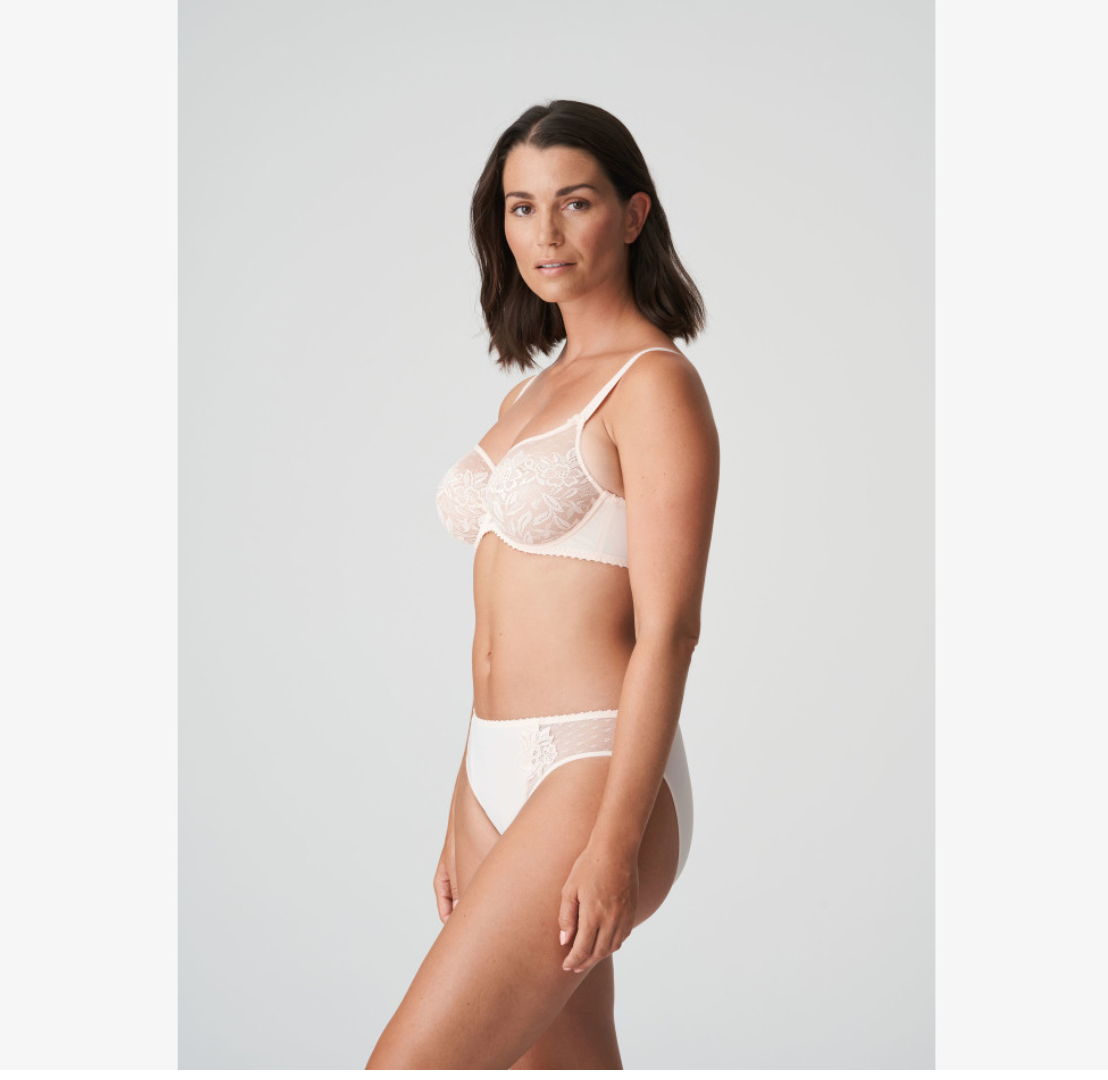 Seductive and airy, this sheer bra features seamless cups and heart-shaped lines. The cups are made from pre-formed French lace with a floral print.