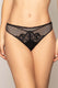 Lise Charmel "Ecrin Glamour" semi sheer tulle thong with embroidered lace. Scalloped edge waist. Dotted mesh at center front and back. High-cut legs. Thong back provides minimal seat coverage. Nylon/spandex/polyester/cotton.