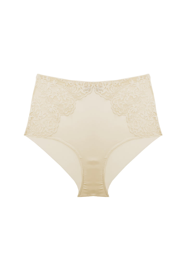 Indulge in timeless sophistication and comfort with Royal Jewel High Waist Brief in Cream Gold , blending shimmering elegance with a flattering silhouette for an exquisite lingerie piece. Blending shimmering elegance with a flattering silhouette for an exquisite lingerie piece.