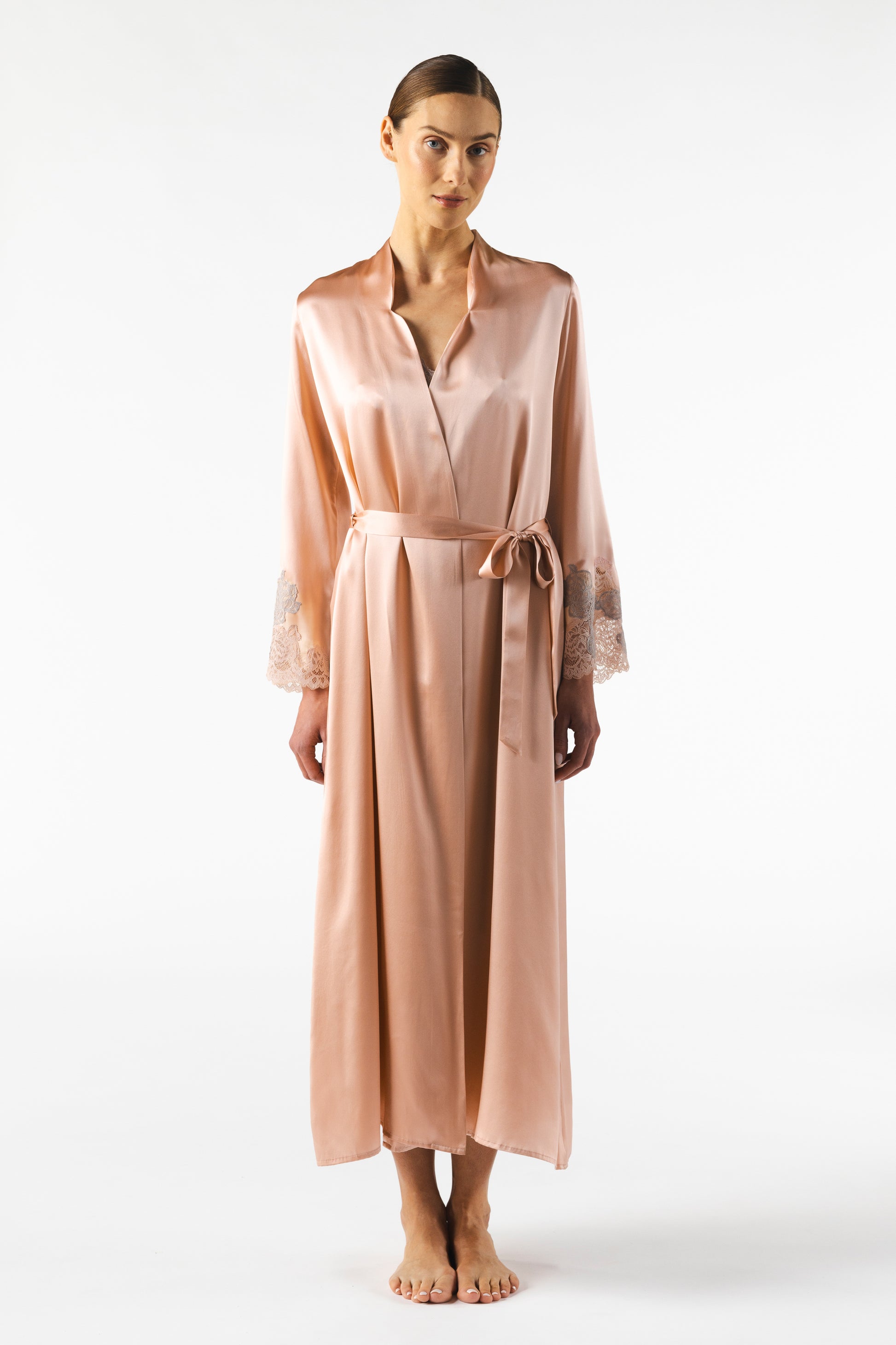 The long silk robe of your dreams, combining buttery soft silk with a variety of tones. Part of our flagship Morgan collection, the Morgan Iconic Short Silk Robe wraps you in heavenly silk charmeuse trimmed with feminine floral lace and much-loved side pockets. This robe is available in many refreshing shades for showing off your personal style while lounging at home.
