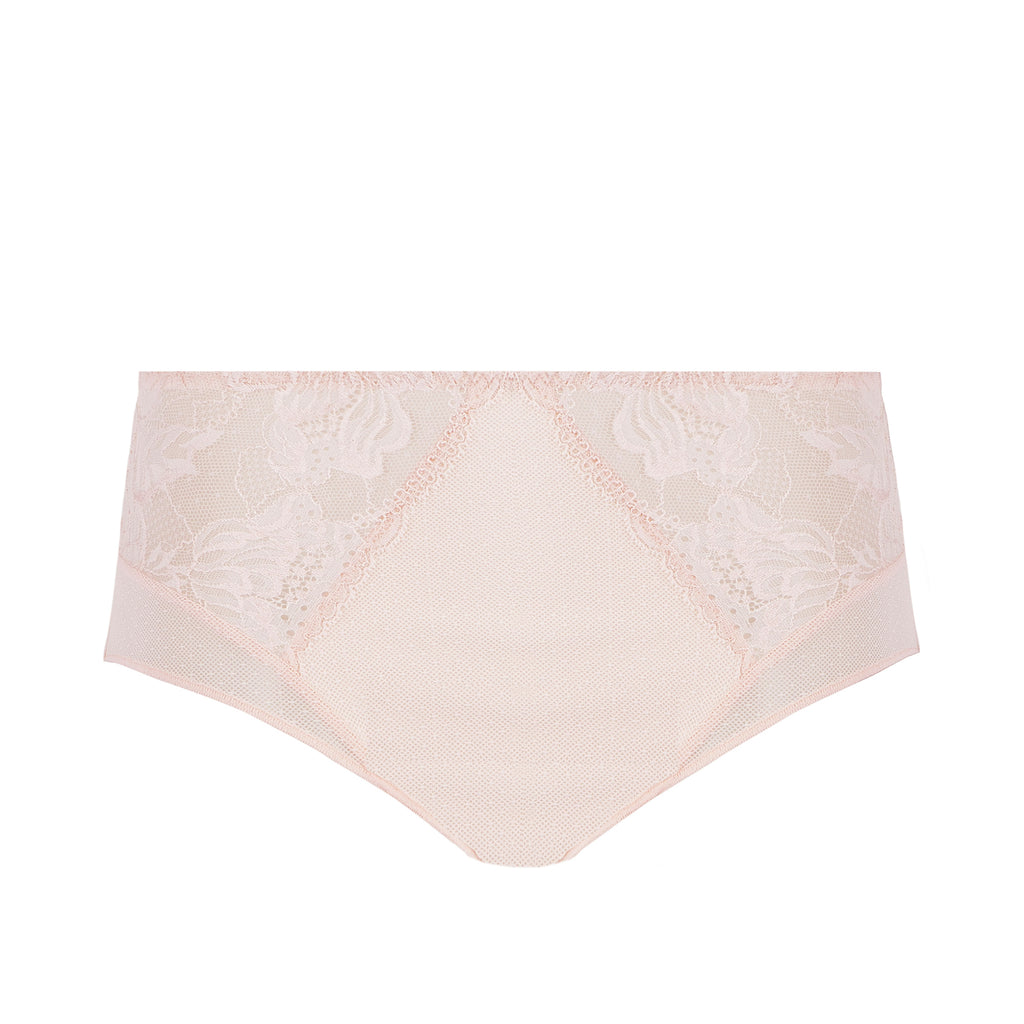 This super-flattering brief hugs your curves to perfection and feels oh-so-delicately chic. With the prettiest Leavers lace, dotted mesh and smooth microfiber back, you’ll feel divine in your matching set. Sewn-on elastic along waist maintains fit. Sheer, stretch lace waist and rear have scalloped edges. Dotted mesh panel has a cotton lining. Seamed sides. Low rise. Full rear coverage. Triangular dotted inset at top rear. Center back seam. Sewn-in cotton crotch lining for comfort.