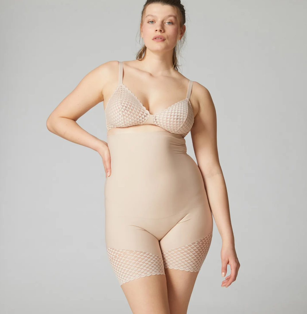Supports and smooths your waist, hips, thighs and butt. This high-waisted short is a smooth operator. Lightweight and powerful, it features a front panel that gently sculpts and smooths the waist and stomach, while shaping and lifting your butt. The mid-thigh length makes it the perfect foundation under dresses, skirts and your favorite fitted jeans. And of course, all of our shapewear has a touch of lace for that chic wink that reminds you how beautiful you truly are.